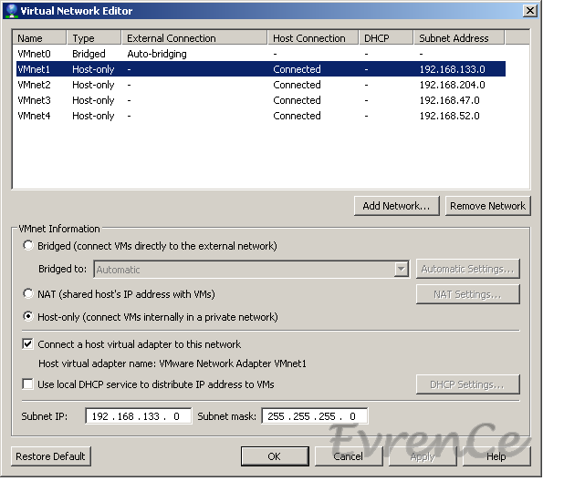VMware üzerinden Edit > Virtual Network Editor penceresini açıyoruz,