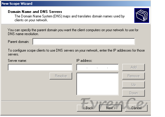 DHCP mizin dağıtacağı IP aralığını yazıyoruz,