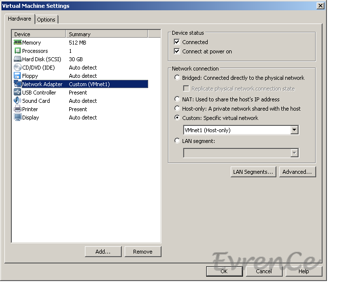 olmuş oldu. Bu sıra tabiki size bağlı, önemli olan buradaki IP lere göre, her bir sanal makinanıza VMware Workstation üzerindeki ayarlar bölmünüzden ugun VMnet’i bağlamanız. VM1 ilk olduğu için onun ayarlarını inceleyelim;